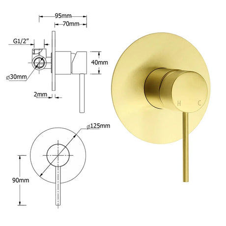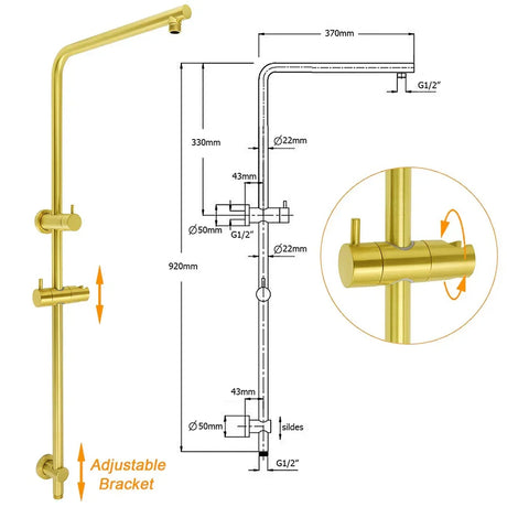 Shower Set 12" Rain + Handheld + Mixer Brushed Gold WELS 3 Star Rail