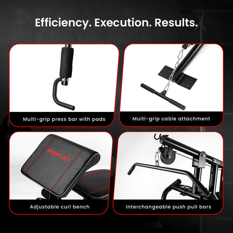 Proflex M8000 Multi-Station Home Gym 44kg Weight Stack Triple Pulley 150kg Capacity Compact